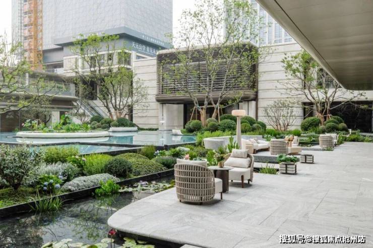 设计师用精心挑选的植物为背景,将水景掩映于森林之中;并在局部采用参与性戏水池结合下沉会客厅的设计;在这里,你可以林下沙发放空冥想,下沉会客厅促膝长谈,临水步道信步闲庭。