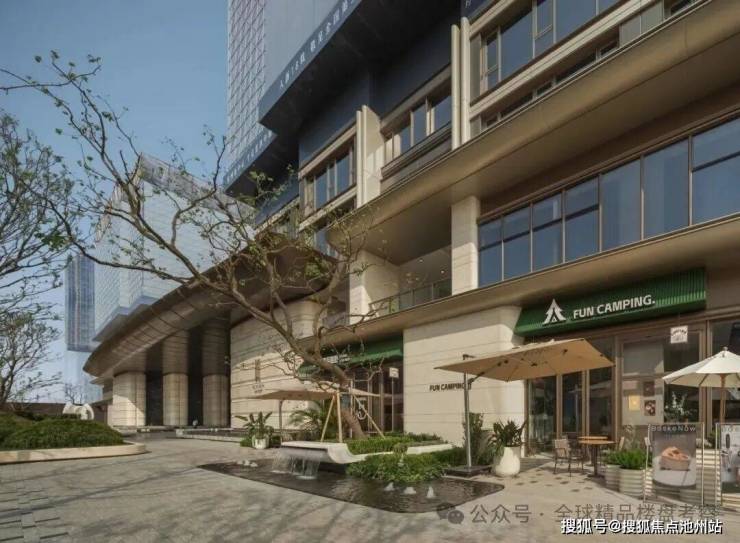 穿过大门后,利用架空层形成的围合的空间,打造了一个水景庭院,用潺潺水声悄悄过滤掉城市的嘈杂,实现工作到生活的“一秒切换”。