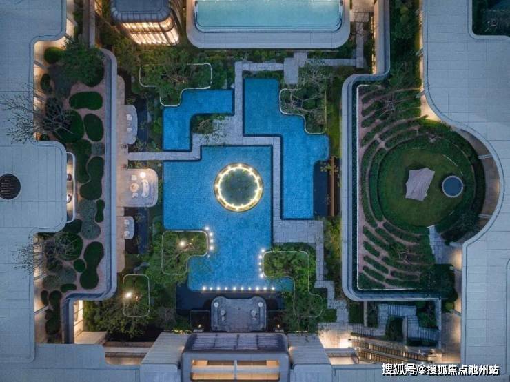比如每栋楼层下的架空层空间,最终组成了约7000㎡规模的泛会所,形成了一个“超级底盘”;比如利用贯穿围合的下沉庭院,使单一的空间被赋予丰富的层次;比如将园林整体抬高至二楼,既打造出隔绝地面喧嚣的 “空中花园” ……