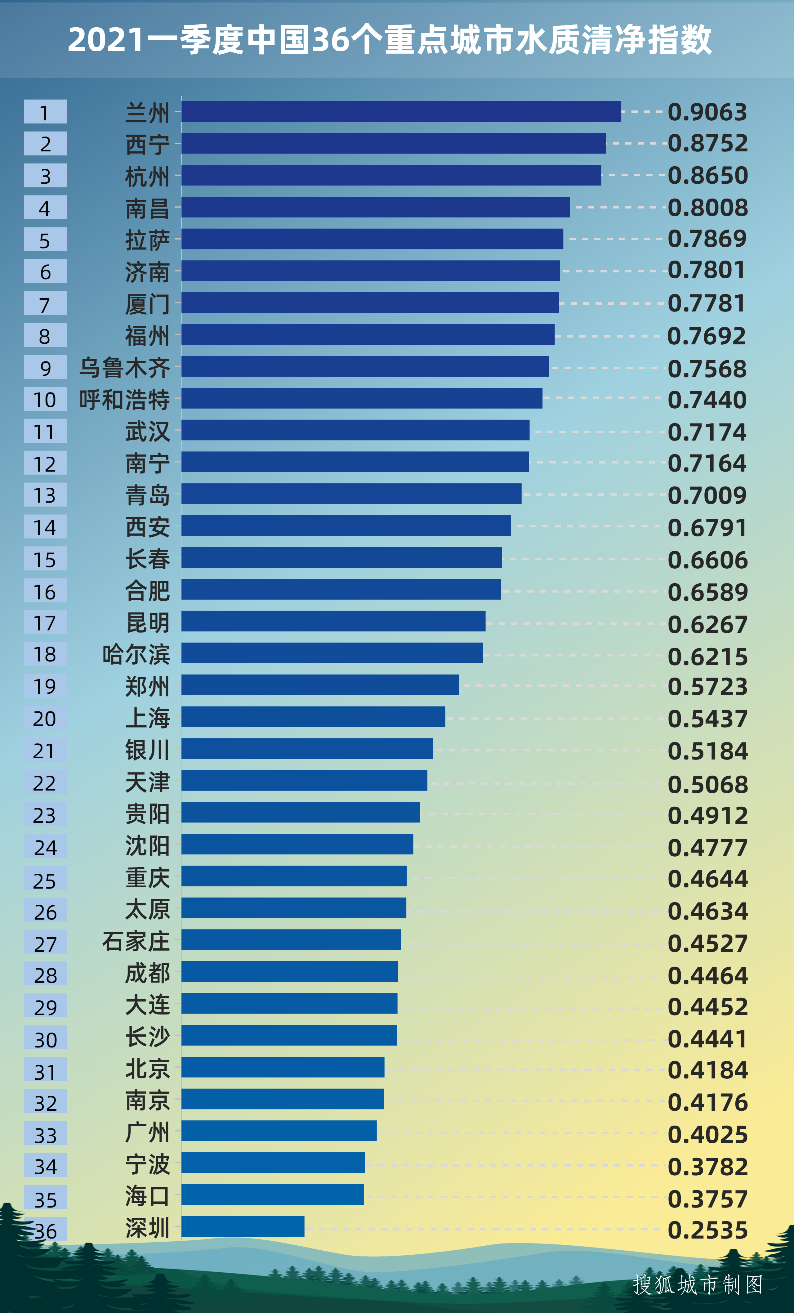 2021一季度中国城市水质大PK:嘉峪关领跑,深圳排名靠后