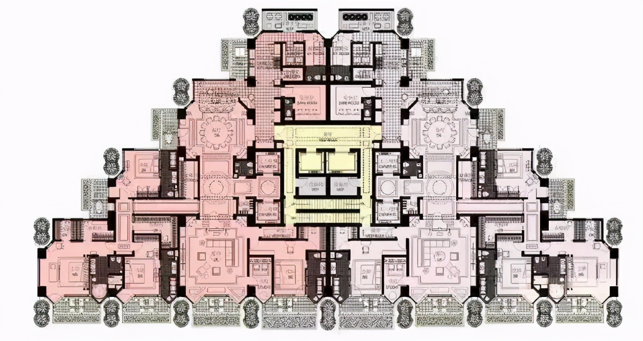 项目南侧户型设计更是罕见,住宅平面采用三角形造型,四间套房,超大客餐厅并且每个房间都有超大阳台,全方位采光绝不浪费丝毫江景,极具仪式感。