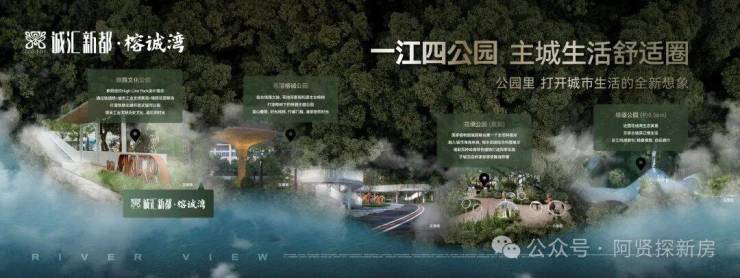 诚汇新都·榕诚湾,大城南向一线临江的水岸住区,坐拥一江四公园,实现一半住宅一半公园。