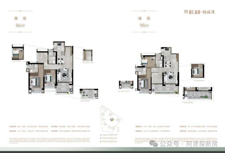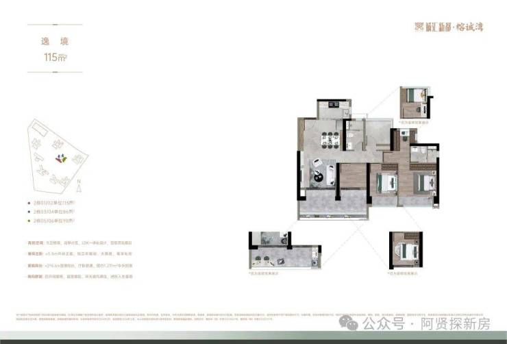 【6】项目产品:约85-115㎡瞰江望园三四房;约138-165㎡全智能江景四房