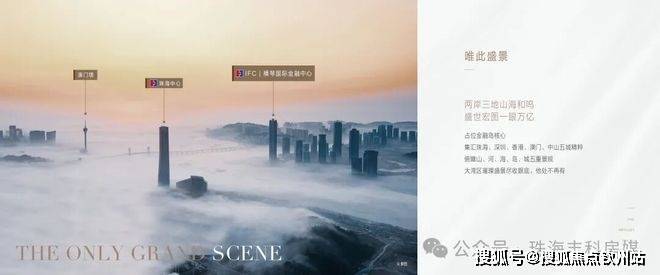 横琴粤澳深度合作区战略高地,珠澳第一高摩天住宅,傲立横琴金融岛尖!以339米珠澳第一高度雄踞城市封面,拥享塔尖圈层,俯瞰湾区盛世。
