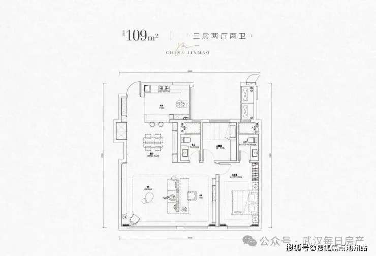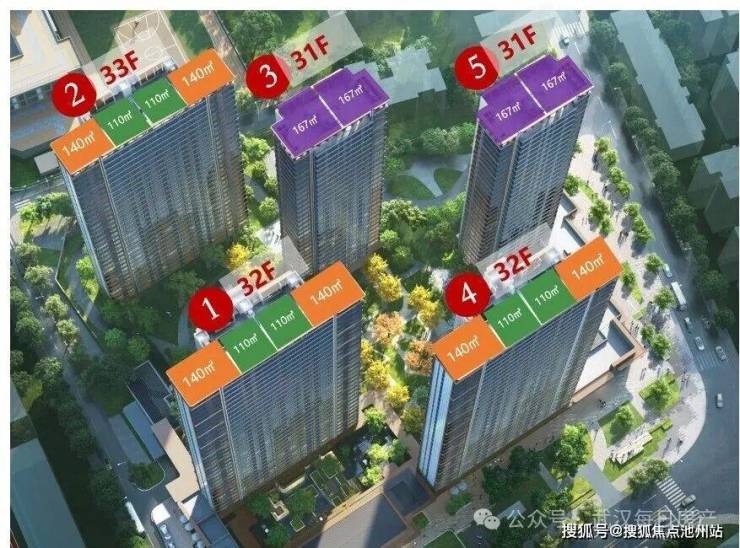 1、4号楼总高均为32层,1个单元,三梯四户布局,层高3米,主打户型、布局也都是一样的,均主打109平三房、139平四房户型。
