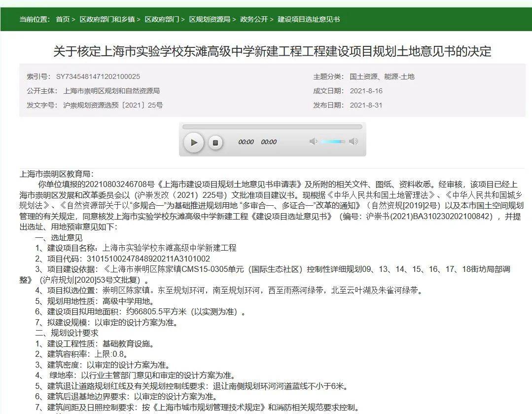 特别君最近还发现【国际生态社区】的上实东滩学校高中部建设规划土地意见书已经出来了: