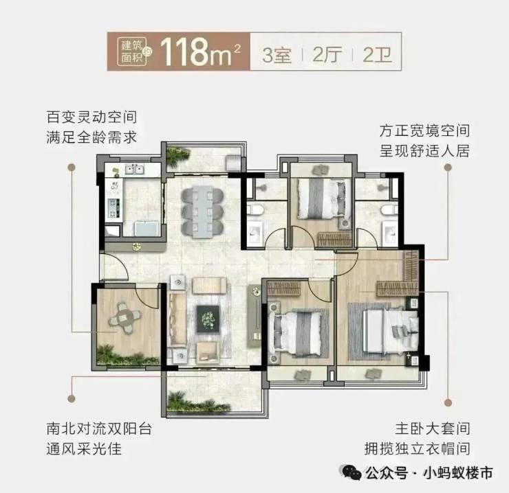 2. 建面约107-118㎡四房两厅两卫