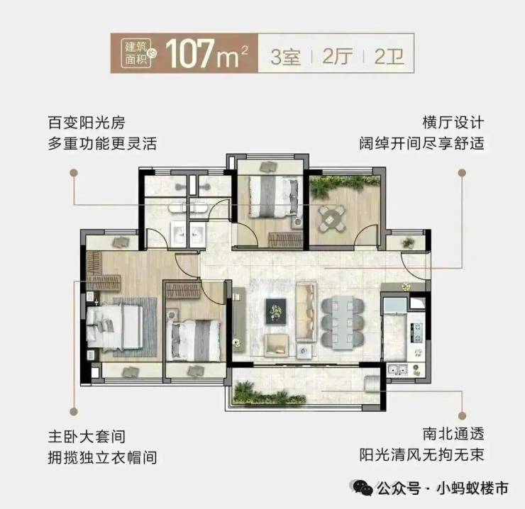 多样户型:涵盖89㎡、107㎡、118㎡、120㎡、150㎡等多种户型,满足不同家庭需求