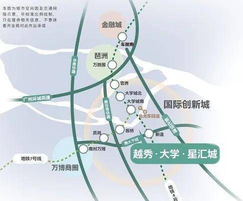项目临近南大干线,背靠4号线新造站,对面就是大学城一期。选择自驾,走南大干线,大概8km到万博;走金光东隧道,接驳新化快速,12km到琶洲、15km到金融城,半集新闻联播的时间就到了。