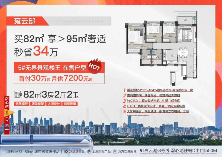 楼盘地址:广州市白云区 8号线首发滘心站 D出口500m