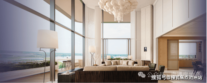 【270°全景仓6.5米超挑空】 环抱式空间设计,采用2层通高落地式转角大玻璃,搭配6.5米挑高客厅,并采用转角玻璃通透处理方式,形成一线沿湖极致观景体验;手法,通过全景落地窗融合花园与室内空间;