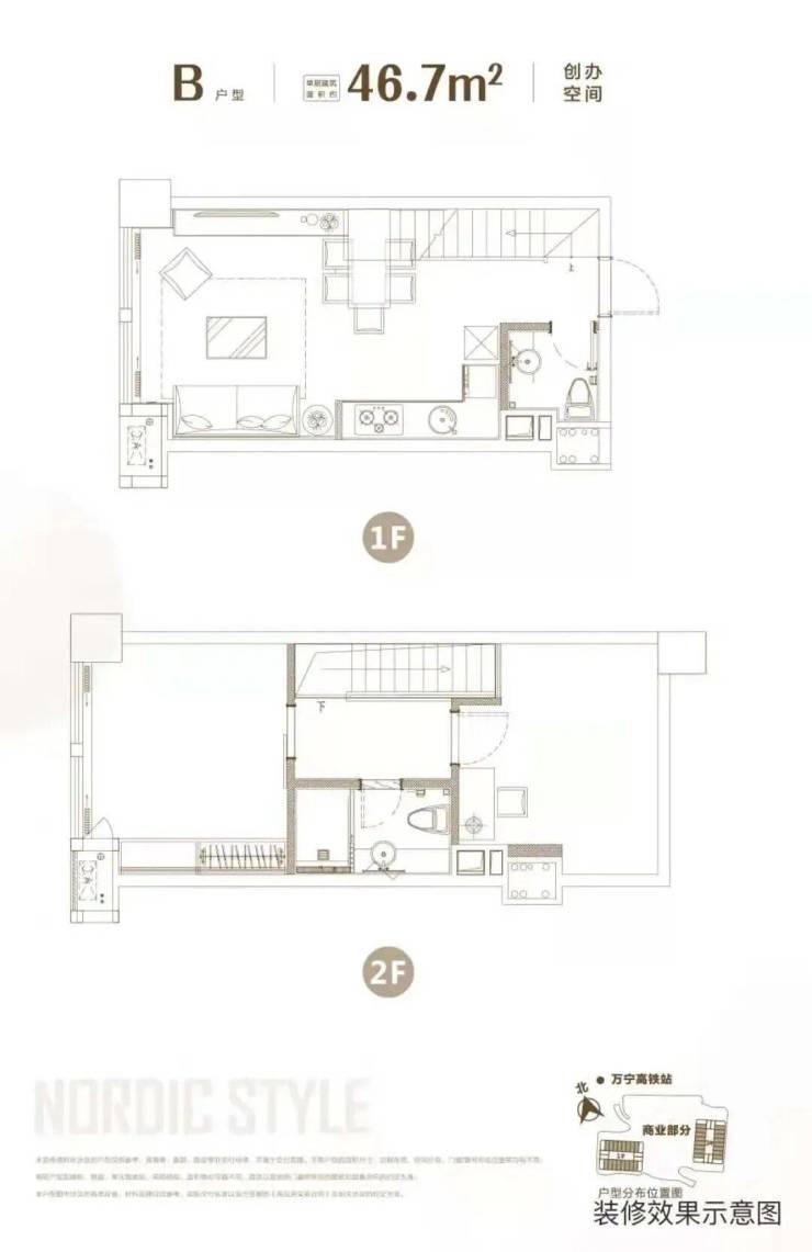 建筑面积:约45~46㎡,使用面积约60~70㎡