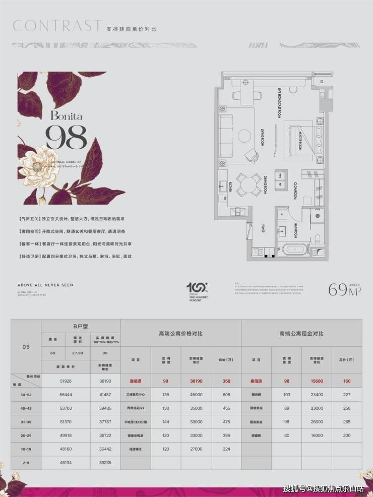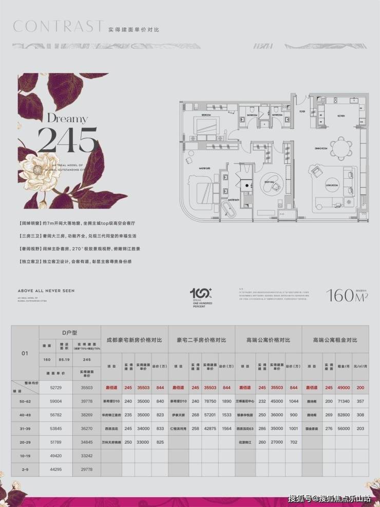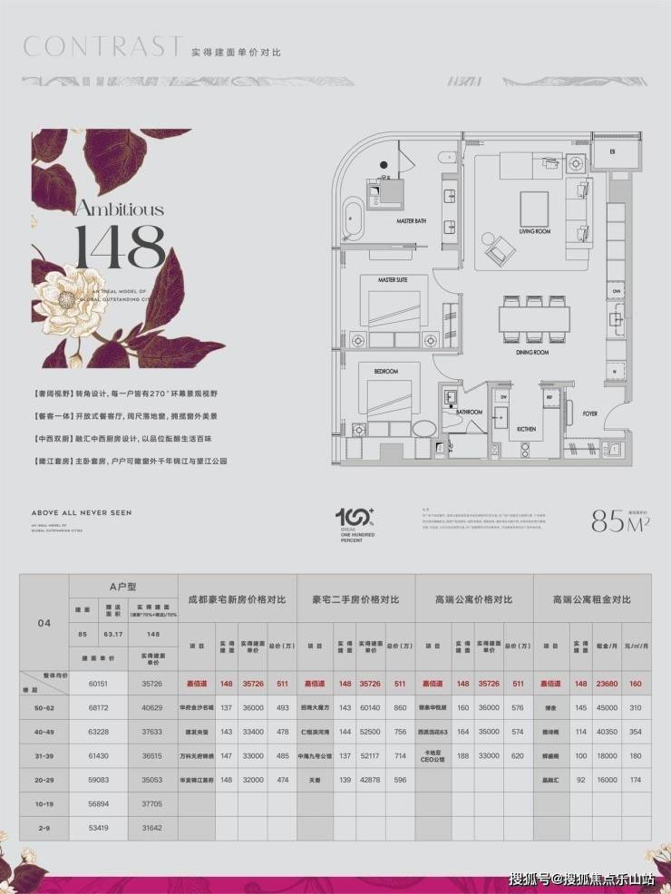 面积跨度:建面60-190㎡,实得85-330㎡,满足高端客群多样化需求。