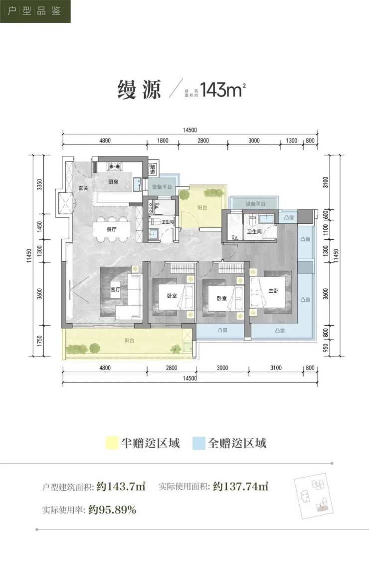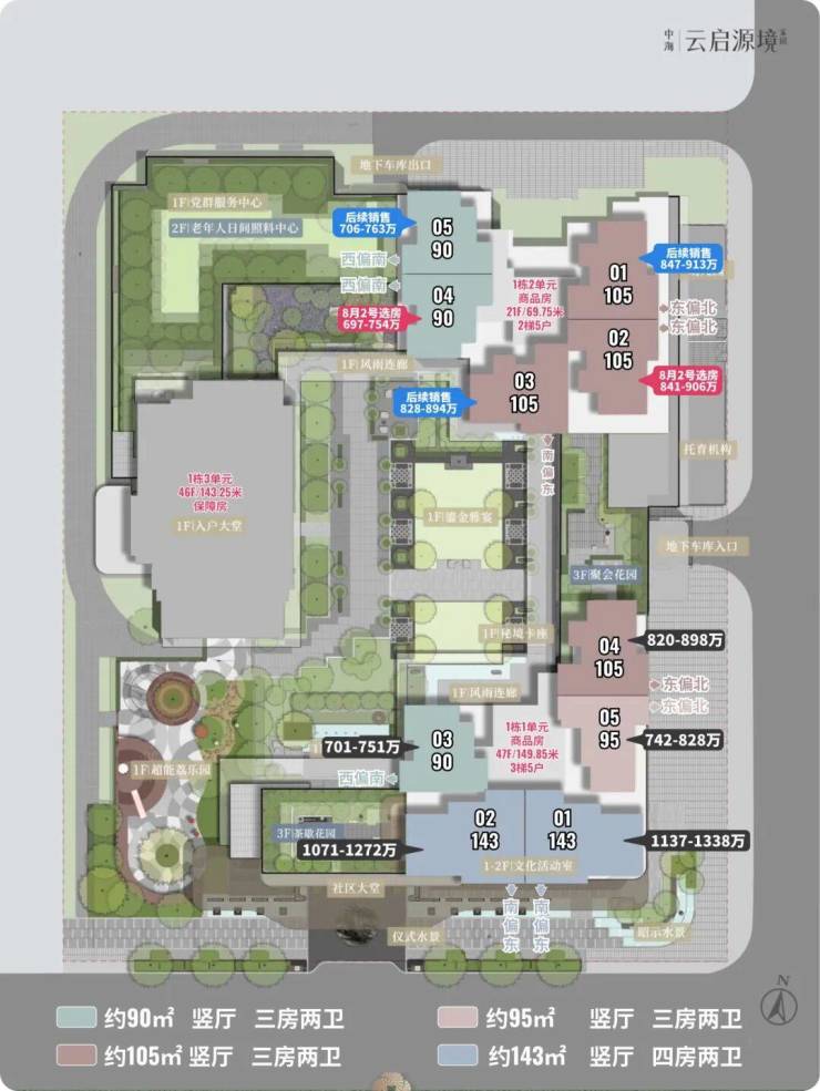 户型实用率高:采用新规设计,户型使用率约95%-96%,主力户型为90-143㎡的3-4房,空间布局合理,得房率优势明显,能满足不同家庭需求。