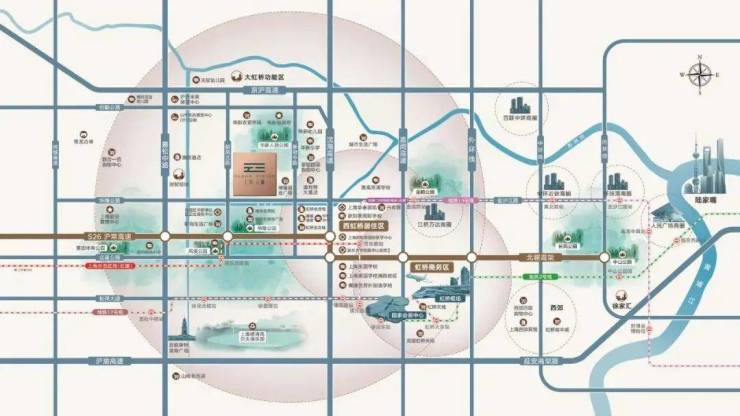项目自驾出行还是比较方便的,10几分钟可以抵达虹桥前湾板块,30分钟内可以抵达虹桥核心商务区。