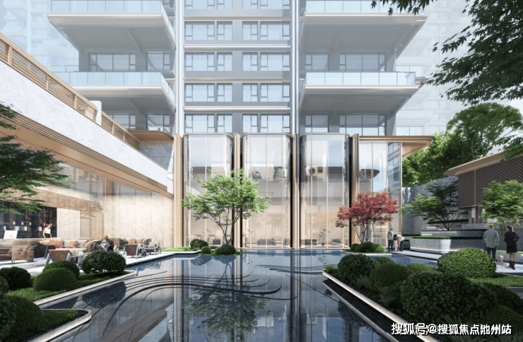 南侧主入口打造约150米“超级界面”,精心塑造具有强烈昭示性的城市建筑群像,借水景和艺术装置与镜水面,营造泉源意境,既彰显了社区不言而喻的品质感,也成为区域焕新升级的视觉标志。