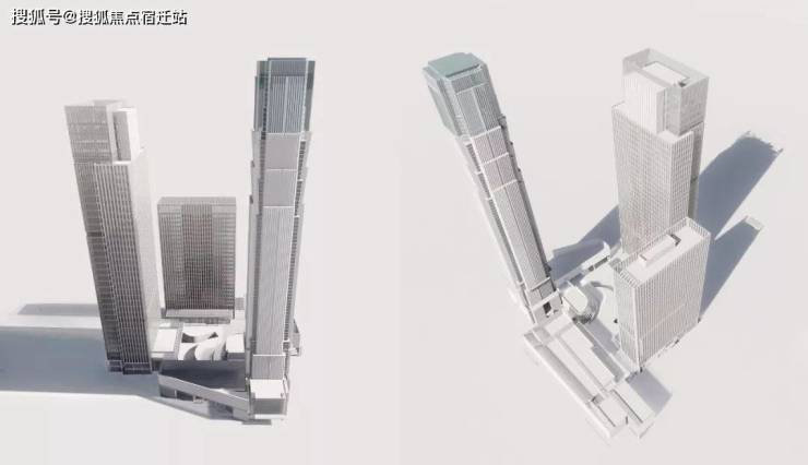 方案从塑造城市地标形象出发,关注与城市环境的联系,使自身成为南北贯通的商业轴线上的重要节点。高层建筑群形成动态上升的城市天际线,在界定城市空间的同时,藉由顶部的观光大厅形成风格鲜明的城市地标形象。