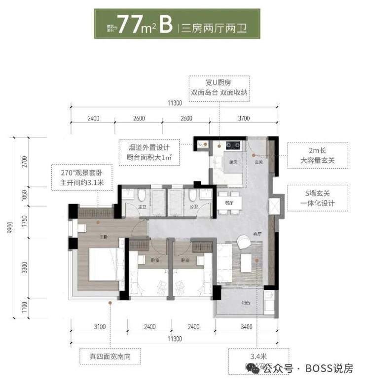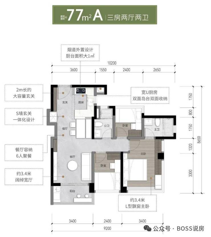 88㎡户型:7米超长阳台+12㎡餐厨一体化,满足家庭欢聚场景