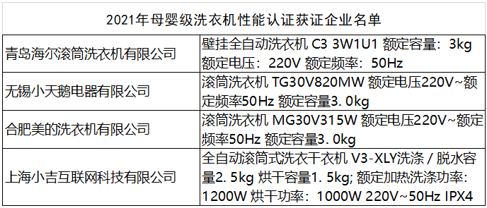 此次高峰论坛还发布了较新的母婴级洗衣机性能认证产品目录,海尔、小天鹅、美的和小吉的四款产品获得了此项认证。据悉母婴洗衣机认证在家电行业内首次提出“母婴级”概念,其检测项目在传统母婴检测项目的基础上进行了升级,使其更适应新一代母婴群体的需求,帮助消费者选购到切实有效,能解决实际问题的母婴家电。