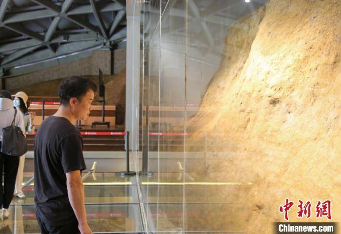 如今,遗址公园里,这段水坝剖面外被加装了加热玻璃材料的保护罩,还安装了土壤温湿度探头。记者看到,现场展示的草裹泥剖面,碳化后一个个圆圈的痕迹非常清晰,且和周围颜色深浅不一。