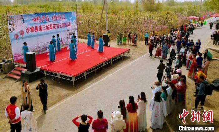 在沙雅县托依堡勒迪镇园艺场村,花香田园内,精彩的文艺表演、纯净洁白的梨花吸引了诸多群众前来观赏游玩,有效助推乡村特色旅游发展,为乡村振兴添了新动力。
