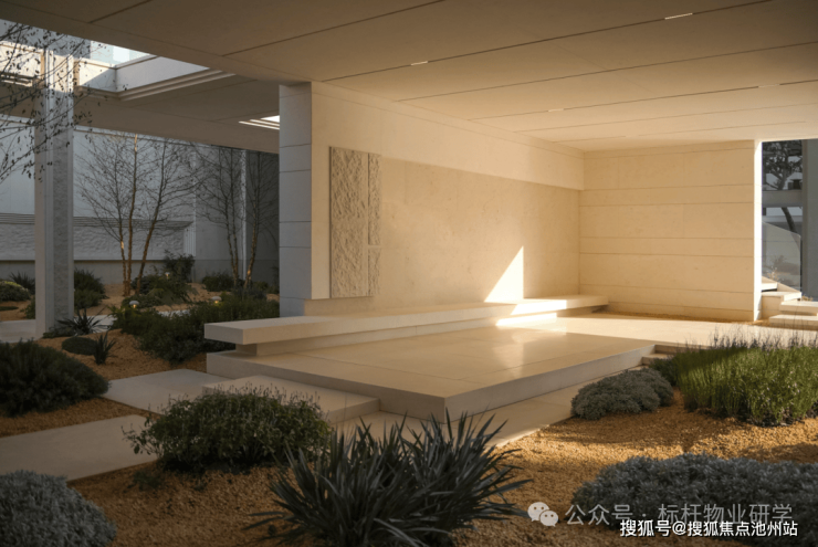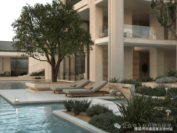 作为首个度假风情的住区,璟逸汲取希腊安缦酒店与Gundari度假村的精髓。素雅的米白石壁墙引领访客,穿行于水院与连廊之间,步入白色莱姆石建筑群,冰蓝水面与沙生植物交织的闲适景致,仿佛将圣托里尼的暖阳拥入怀中。