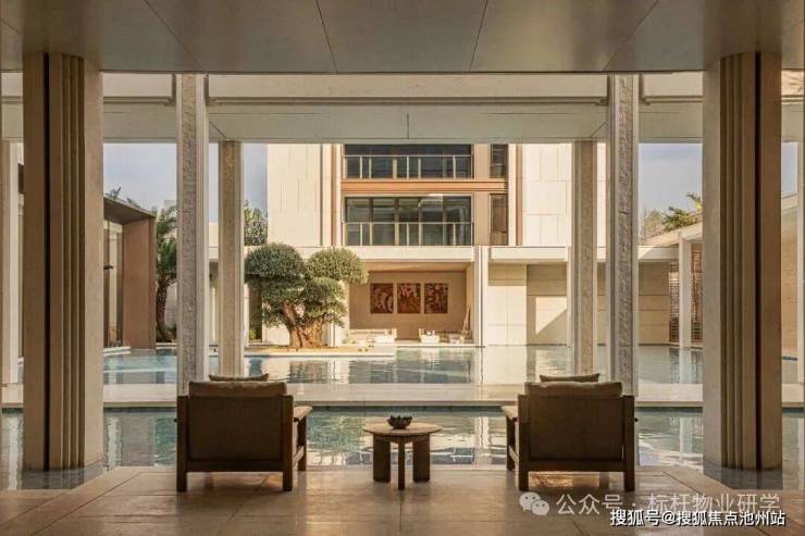 架空层观景平台上,柱廊、水庭与树影交融成诗,喧嚣在光影流转间被时光温柔稀释。归途于此,以水之哲学,成就无界的心灵栖居。