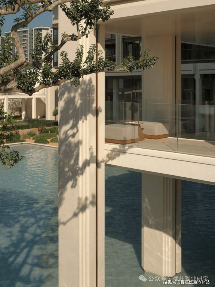 步入二进橄影廊庭,光影在回廊与水面间流转,构成静谧而富有呼吸感的水庭。天光倾泻,水色生辉,如同希腊安缦花园般悠然浪漫,演绎栖居的诗意序章。