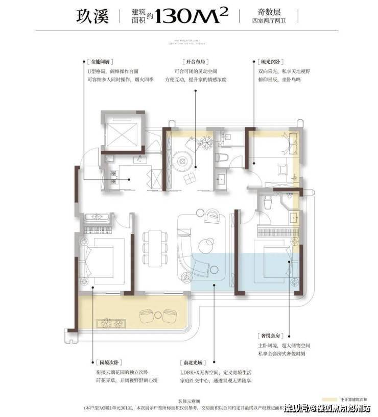 包含建筑面积约106-146㎡的三房和四房,是一个低密度的四代住宅小区,其中的130㎡和146㎡都是带空中花园的真四代户型。
