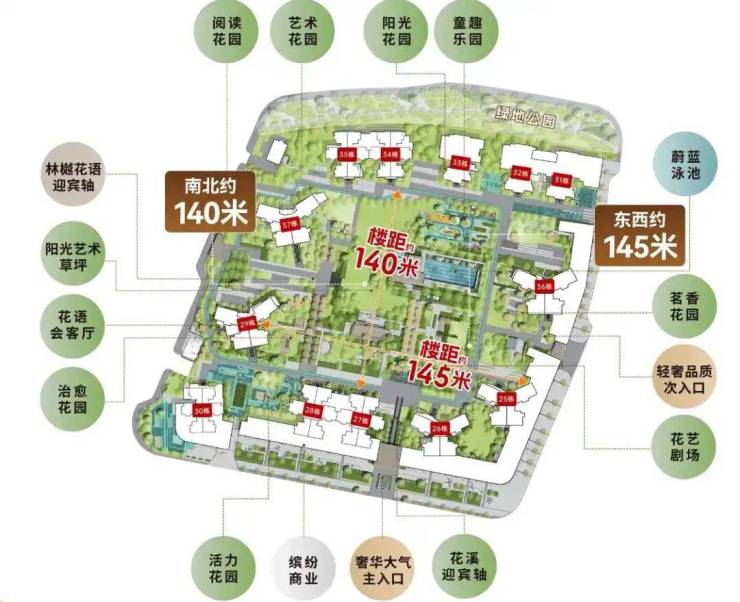 约10万㎡社区绿色园林,超百米阳光楼距,超阔央景园林一览无遗。