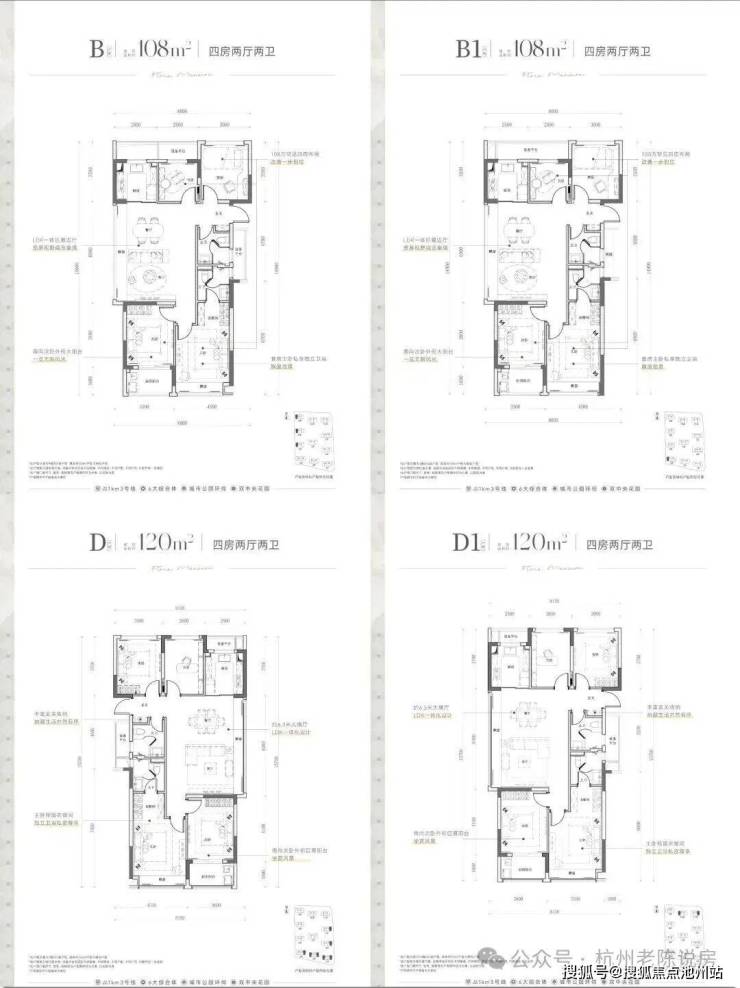 更大一些的户型如建面约108㎡、120m²的四房边套设计,不仅面积宽敞,南向双卧室+客厅大飘窗的设计也提升了居住舒适度。