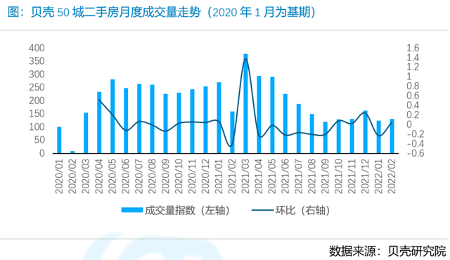 供需活跃、预期改善,预计3月整体市场量升价稳。贝壳研究院数据显示,2022年2月贝壳50城带看客户量环比增长约10%,新增挂牌房源量环比增长近六成。市场预期方面,2022年2月贝壳50城二手房景气指数回升至21,市场预期保持修复。预计3月二手房市场整体成交量环比明显增长,价格保持平稳。