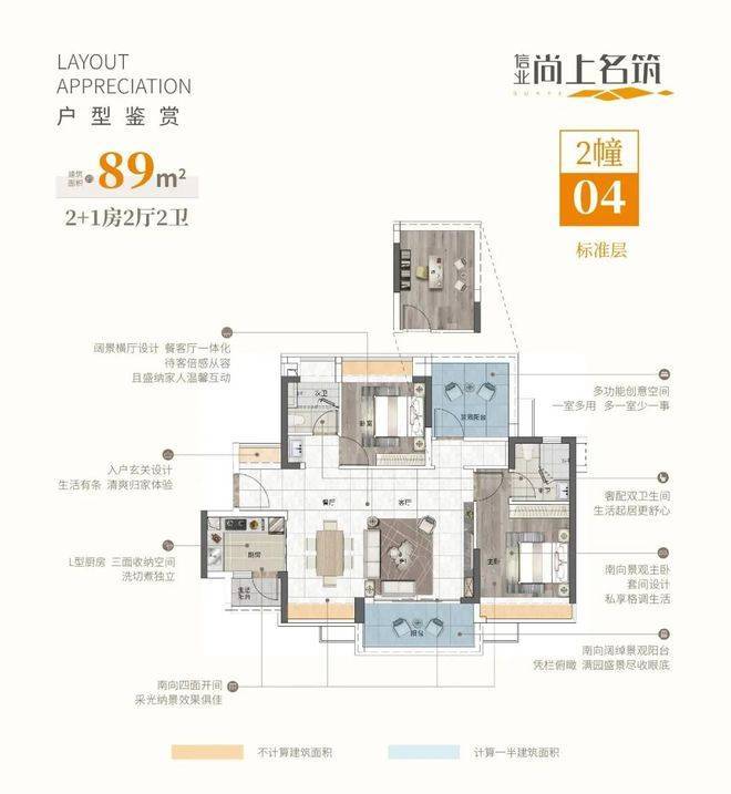 ☀实用88㎡2+1房2厅2卫【南向景观】