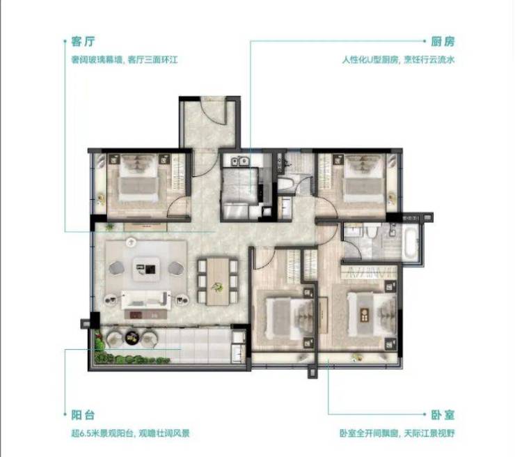 户户望珠江美景,送超大入户花园,超9成高实用率,卧室全明飘窗,享有滨江美好生活
