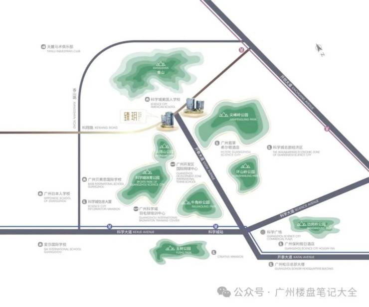 科学城美国人学校、爱莎国际学校,贝赛思国际学校等学府群落