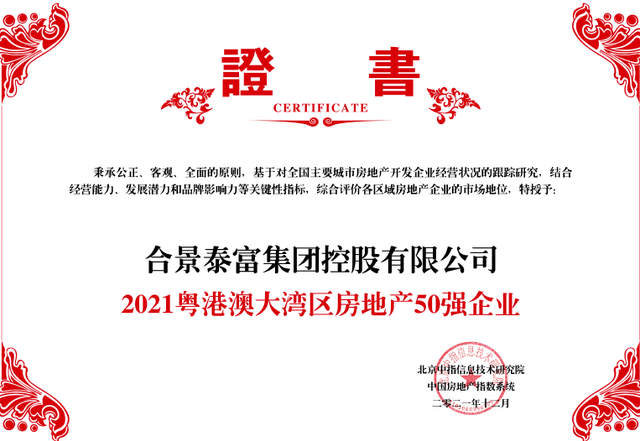 其中,合景泰富集团凭借在粤港澳大湾区房地产市场的出色表现荣获”2021粤港澳大湾区房地产50强企业”;凭借过硬的产品实力,合景泰富标杆项目——臻溋名铸摘得“2021-2022中国百城建筑新地标”、合景·臻颐府摘得”2021-2022城市典型样本项目”等多项大奖。