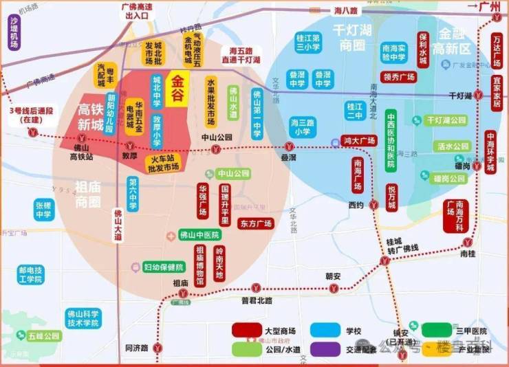 佛山市祖庙板块,规划高铁未来城,也定位为广湛高铁枢纽新城,总投资487亿,片区将发展科创服务业、高端商贸业等,与千灯湖(金融中心)、祖庙(文化中心)差异化发展,共同打造中央CAZ服务核。