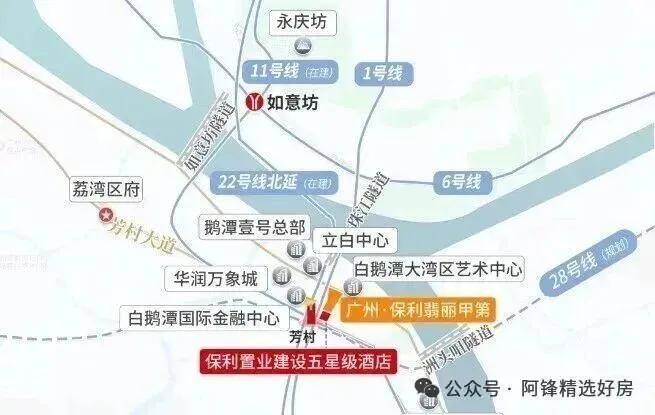 1号线和11号线交汇的芳村站就在附近,去广州各大CBD都方便,以后还可能有四线地铁,这地段想低调都难。地铁11号线开通后,白鹅潭大道和如意坊放射线(一期)已启动新一轮围蔽施工,冲刺年内通车,有望打通板块任督二脉。