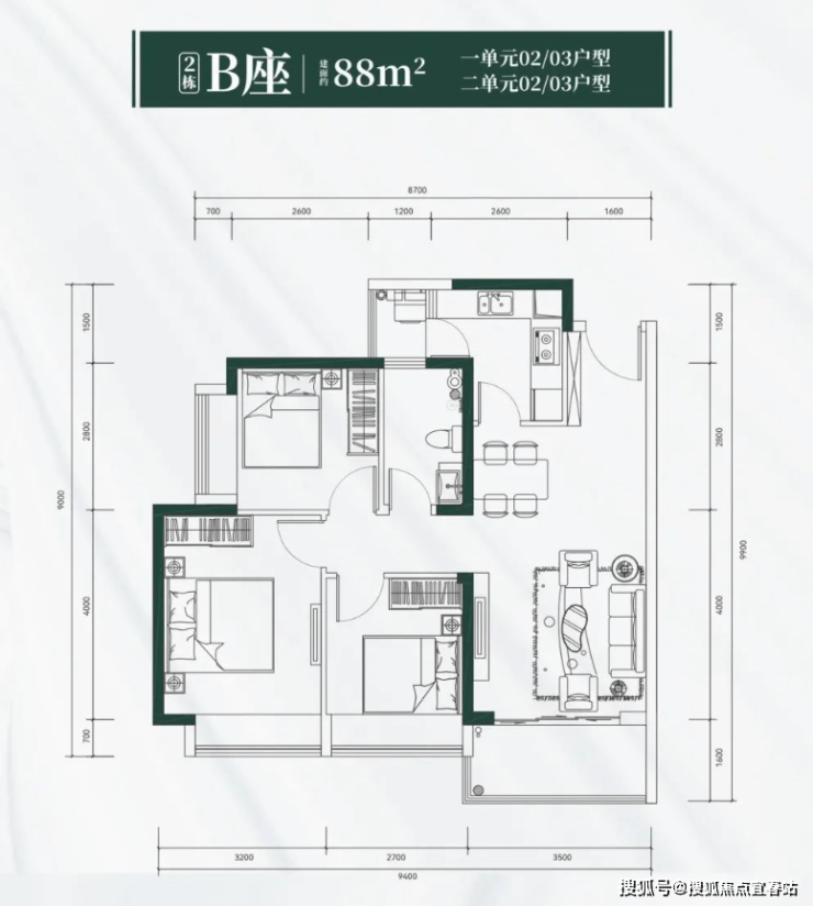 ◆开发商营销中心诚挚邀请,一键预约,尊享内部折扣!匠心独运的精品项目,恭候您的品鉴与选择。⭐2栋B座一单元02、03户型、2栋B座二单元02、03户型:面积约为88㎡的3房2厅1卫