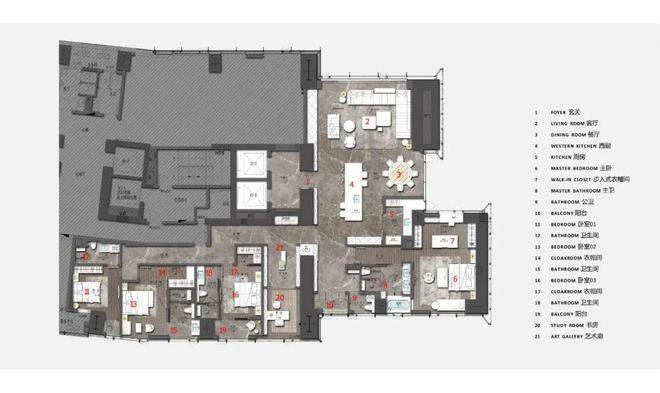 深刻诠释了形式追随功能的设计理念,集美观、雅致于一体。根据不同户型尺度,定制设计中西双厨或开放式的社交厨房。巧思的细节设计,不论家庭互动还是会客聚友,都可以增加互动,社交无阻。