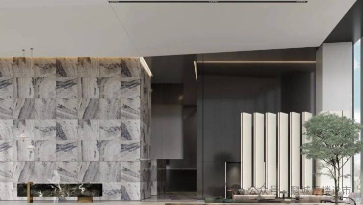 约10.2m极致挑高艺术大堂,致敬不凡气度,谨献湾海人物的尊崇交际场域