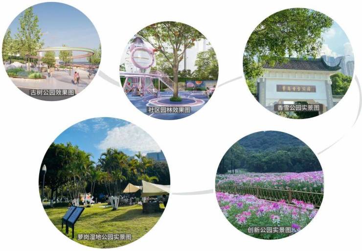 星河臻华府倚山而建,配建公园式社区 园林;毗邻古树公园,现代城市界面与古树保护园区相融合;更享周边三大公园环绕,悦享都市森林氧吧。
