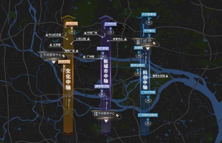 2013年,华润置地入穗,以“三大中轴”战略与城共进: 先更新传统中轴——白鹅潭万象城; 再赋能新城市中轴——长隆万博中心。