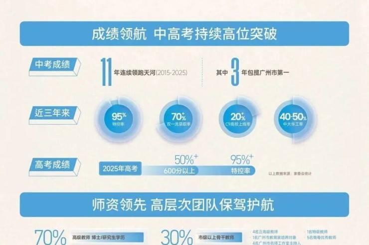 天河外国语学校2024届高考特控率95.5%,985高校录取率40%,中山大学上线率超35%,初中部连续十年领跑广州中考(2024年总分平均分居全市梯队)。