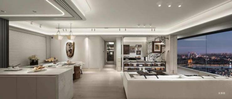 近60㎡LDKGX一体化无界方厅,以开放式社交岛台为核心枢纽,巧妙串联中西厨与互动场域。米其林级家宴在此从容上演,亲子烘焙的甜蜜时光更显温情脉脉,空间流动无阻,情感自在交融。