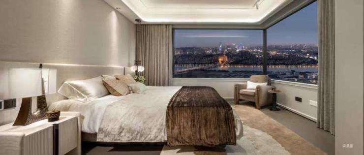 约8.4米“超跑级”阔境阳台,是户型最耀眼的名片。270°寰幕视野,无遮挡呈现壮阔珠江与城市天际线的磅礴气象,如同私属观礼台。晨起瑜伽沐江风,暮倚窗前赏落日,繁华与静谧在此优雅共生。L型环景飘窗主卧,拥揽江风晨昏,让生活时刻与风景相伴,尽显峯层的进阶生活品位。
