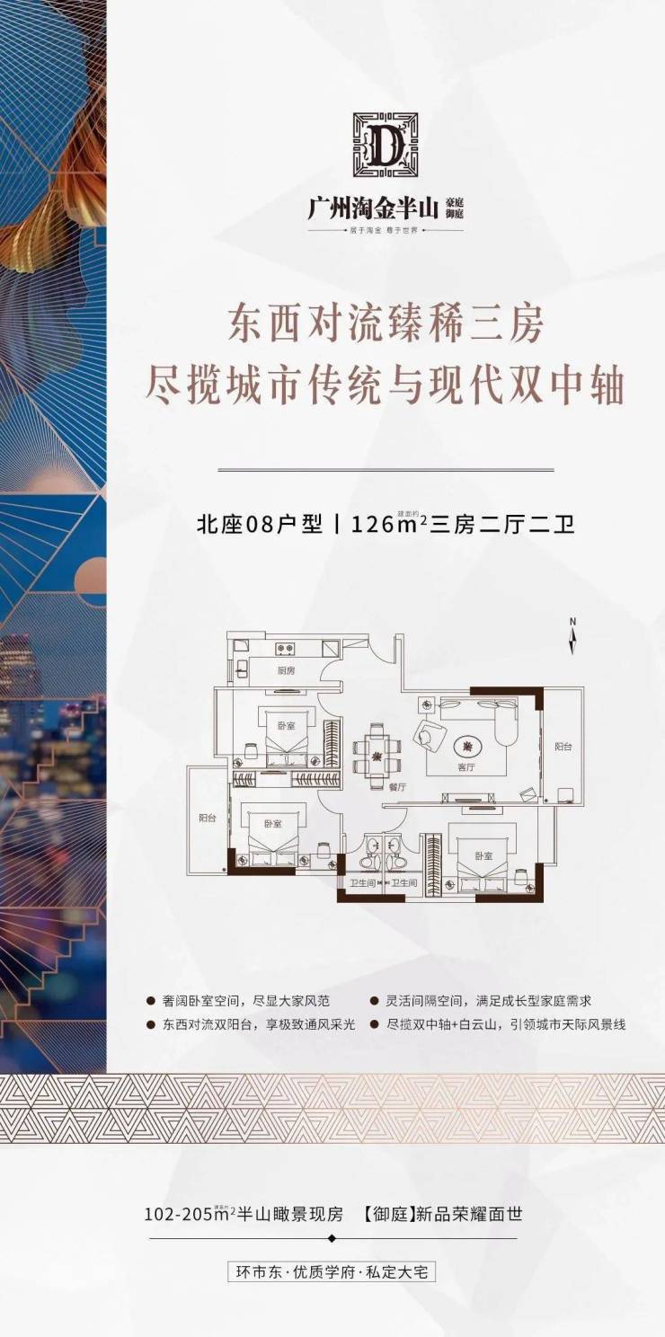 【淘金半山御庭 | 六大价值体系】项目地处越秀区环市东,是广州政治、文化中心,新楼盘供应稀少。项目享有卓越的地理位置,可俯瞰白云山、越秀山等景观,同时可欣赏到珠江新城的繁华景色。