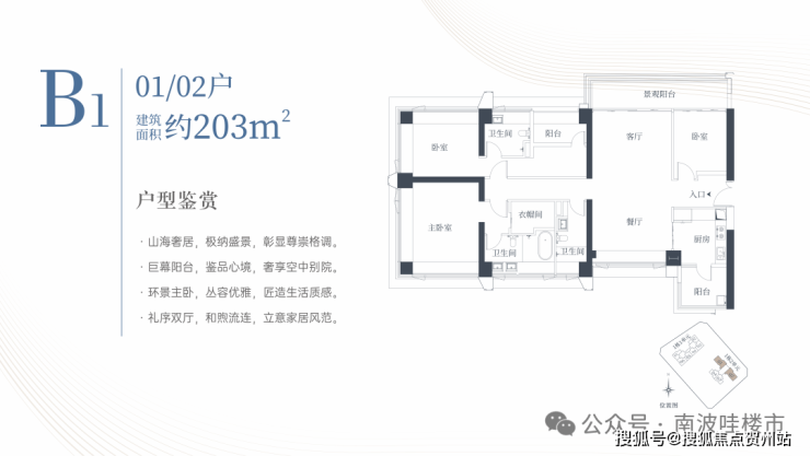 匠筑建面约124-203㎡全生命周期天幕户型,360°采光通风,270°环景主卧,山海日常推窗可得。背山面海,藏风聚气,家宅福泽之地。