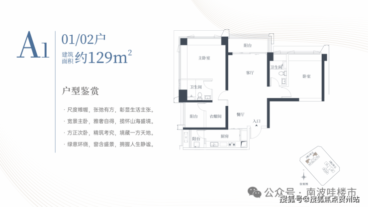 🔹1栋一单元A1、A2户型:面积约为129㎡