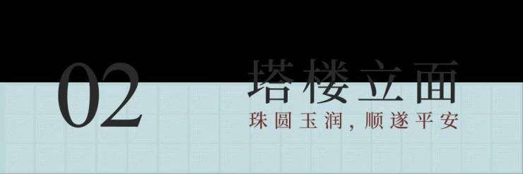 塔楼设计,提取圆润的玉造型和白金的配色。“金镶玉”使建筑立面变得更为柔美,圆弧铝合金转角线条,形态上暗合珠圆玉润的传统美学意韵,代表一种温和雅丽尊贵典雅的审美价值取向。从文化内涵角度,圆弧图形寓意圆融通达,顺遂平安,体现一定的传统文化内涵。立面上中下三段式黄金分割比例,具有严格的比例性、艺术性、和谐性,蕴藏着丰富的美学价值。